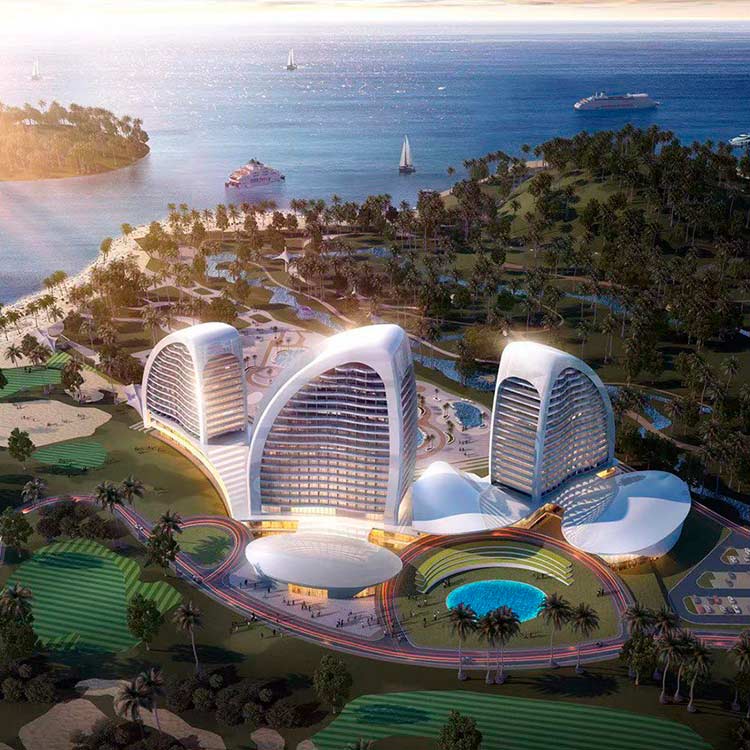 Курорт включает отель на 500 номеров, профессиональное поле для гольфа, казино, комплекс вилл, марину для яхт.